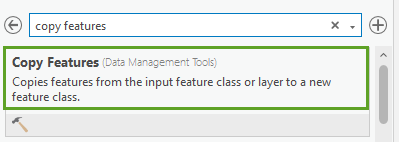 7. In the Geoprocessing pane, in the search box, type Copy Features. In the search results, click Copy Features to open the tool dialog.