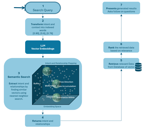 ModelBuilder’s semantic search, is a smart search engine technology that supports conversational language and can make connections between related words recognizing the intent or meaning behind a query in comparison to standard search engines that simply find partial or complete matches between a search query and a body of text being searched.