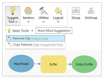 You can seamlessly access this enhanced tool suggestion functionality in ModelBuilder through the Suggest Tool dropdown in both the ModelBuilder ribbon and the tool’s output context menu.