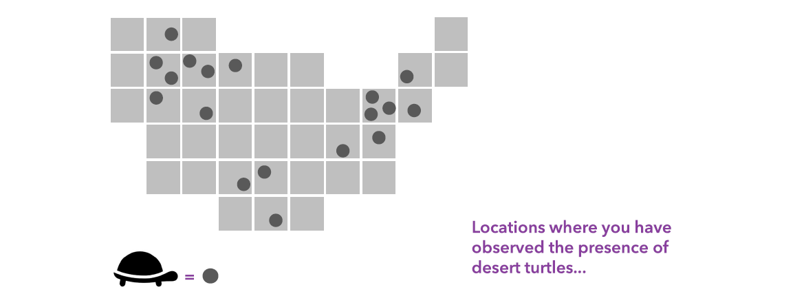 Today we focus on the presence of an endangered species, the desert tortoise. Global Biodiversity Information Facility (GBIF) offers free and open access to biodiversity data, from where we downloaded the worldwide occurrences of desert tortoise by searching its scientific name, Gopherus agassizii. They have been found in Southern California, Nevada, Utah, Arizona, and Mexico. As mentioned in the article The loneliness of the desert tortoise, from The Economist journal, it’s a once-abundant species that struggles to survive today.