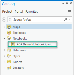 2. In the Catelog pane, open the POP Demo Notebook.ipynb under Notebooks accordion.