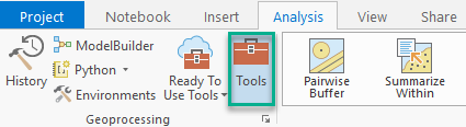 5. On the ribbon, on the Analysis tab, in the Geoprocessing group, click Tools.