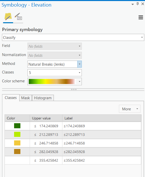 As mentioned above, the Reclassify tool in ArcMap has a “Classify” button that launches a dialog for advanced and manual classifications. Users new to ArcGIS Pro sometimes wonder if the Reclassify tool in Pro is missing the classification options. The answer is that the same classification options are accessible in the Symbology pane in ArcGIS Pro. We had a frequently asked request for many years to support the layer classification set in the symbology as the default class breaks in the Reclassify tool. In ArcGIS Pro we implemented the feature. Now the Reclassify tool will import the unique values or classified break values as specified by the layer symbology as a default.