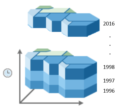 Now that we understand the broad temporal patterns of hail events, we can explore the temporal trends at various locations in our map. More than 272,000 hail events were aggregated into a space time cube using the Create Space Time Cube By Aggregating Points tool in ArcGIS Pro. This tool takes temporal data (hail events) and aggregates it into defined geographies (counties in our case). The output of this tool is a space time cube where each county now has an associated time series (Fig. 5).