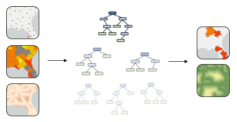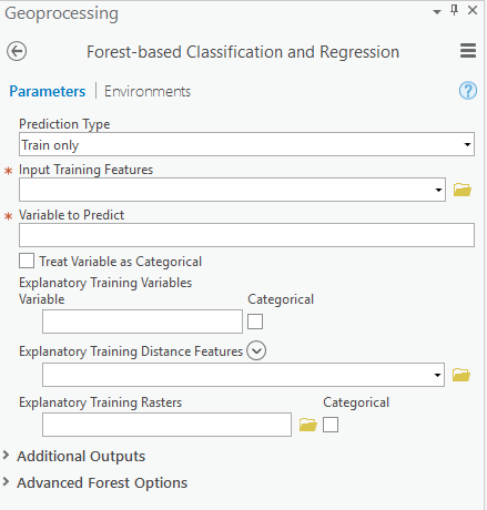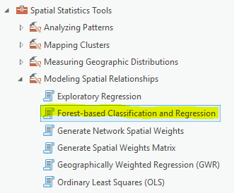 Forest-based Classification and Regression extends the utility of the powerful random forests machine learning algorithm by incorporating the ability to consider not just attribute data in your models, but also distance-based training features and explanatory rasters to leverage location in your analysis.