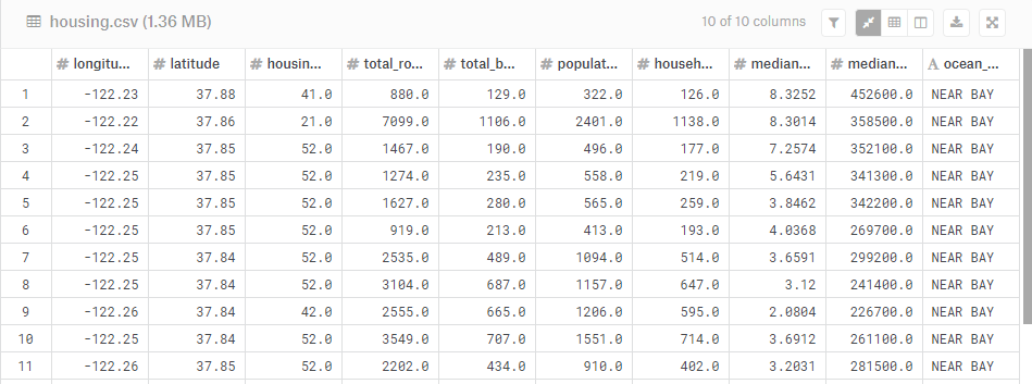 We’ll start by using the popular California Housing Dataset from Kaggle, containing tracts in California with a series of aggregate attributes for the homes in each tract.