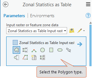 Apart from Zonal Statistics as Table, Interactive Feature Input is also supported in the following Spatial Analyst tools, grouped by toolset: