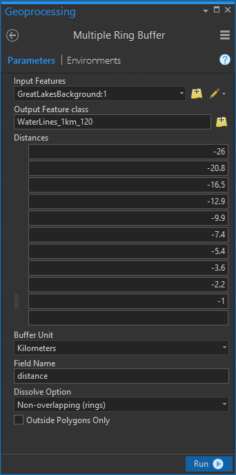 One tip for the Multiple Ring Buffer tool. When you define your distances, you have to do it one at a time. Add a distance, then when you hit tab or give something else focus, a new empty text box will appear for another distance. C’est la vie.