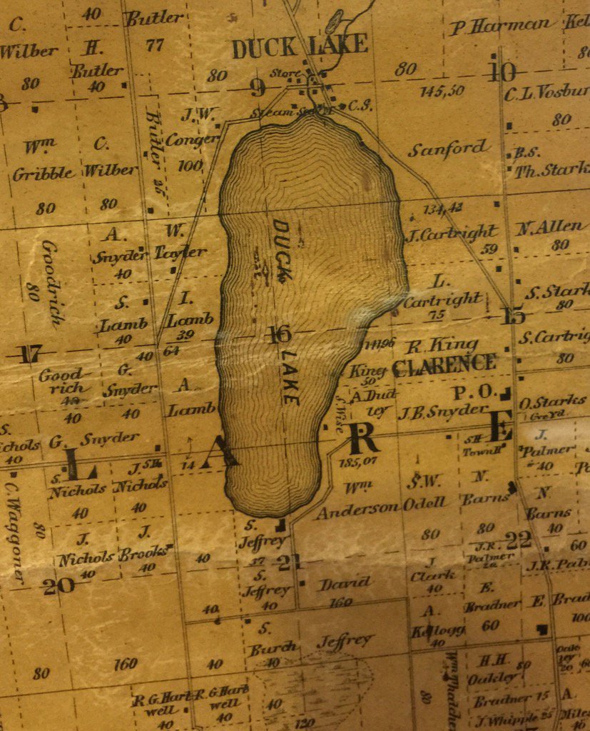 First, let’s appreciate the magnificence of some outstanding examples from our forebearers. Here is a snapshot I took of a big varnished old wall map of Michigan townships that I found at a place called “Turkeyville.”