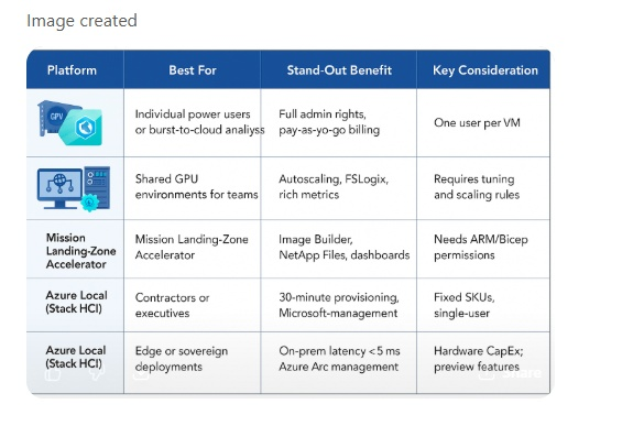 When data or operations must stay on-premises, Azure Local extends Azure management and AVD experiences to local GPU clusters.