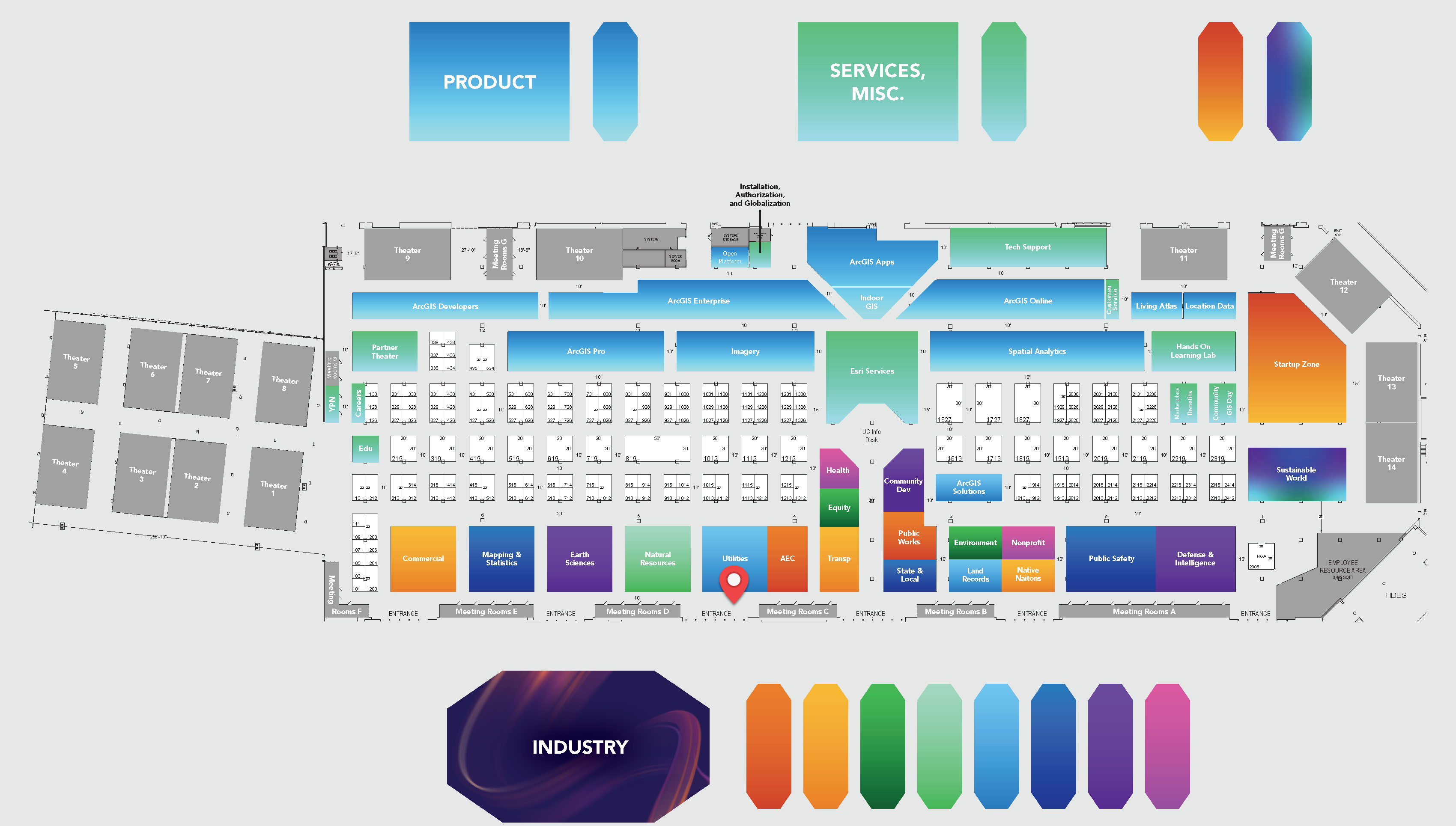 Visit us at the Utilities industry area (indicated using the red location pin in the image below) in the Esri showcase on the expo floor. The showcase is open during