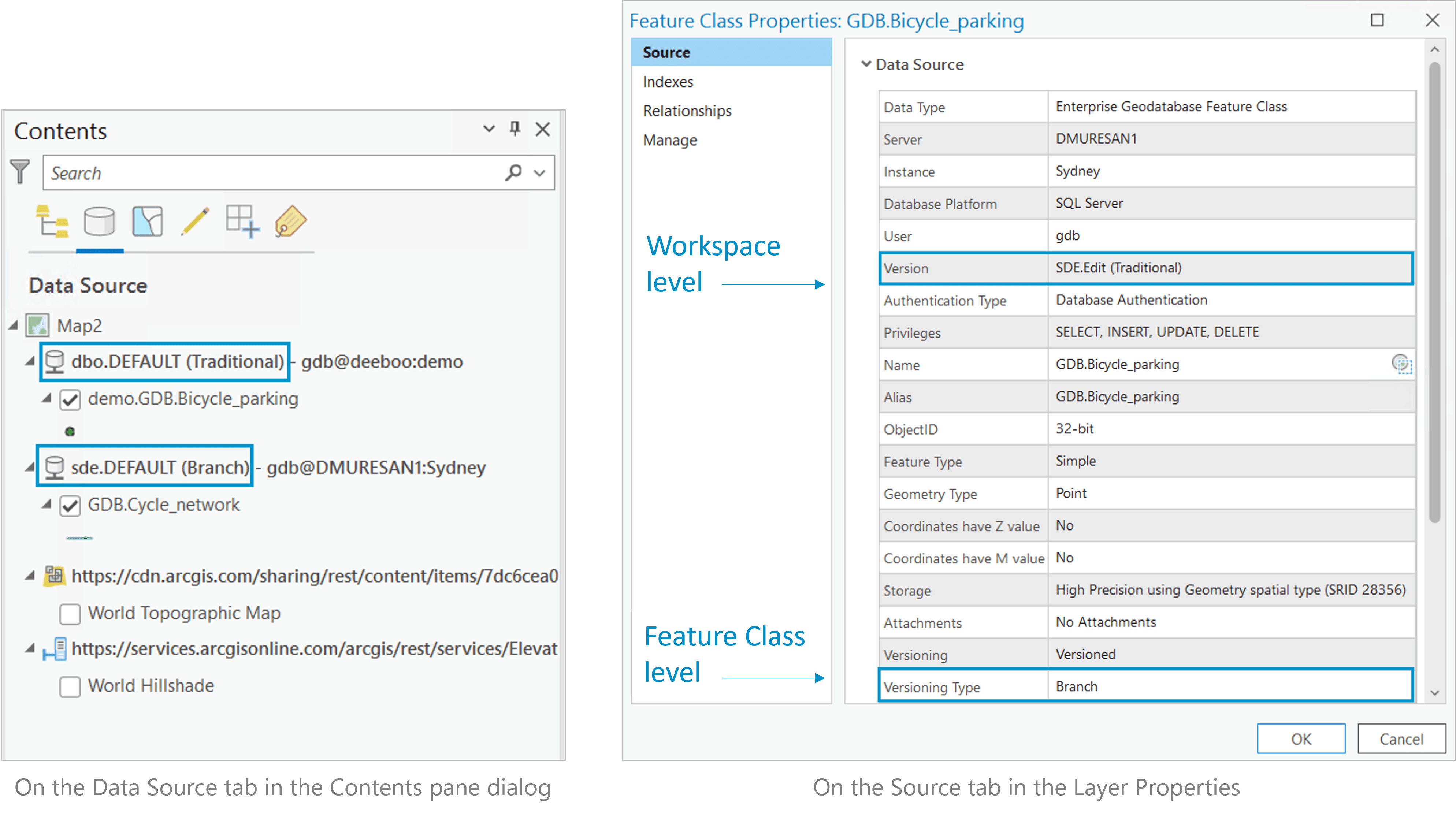Adding this additional metadata for the data source will help you to quickly identify if the versioning type for the workspace properly matches the dataset registration for editing, version management, and publishing workflows.