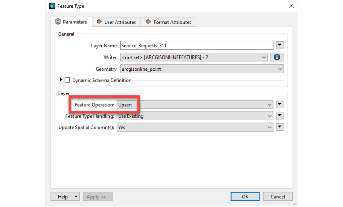 3. ArcGIS Online hosted feature service writing now supports an Upsert mode. This will make use of GlobalID as the row identifier field and either insert new rows or update existing rows. In a near-future release we will add support for a user-defined row identification field.
