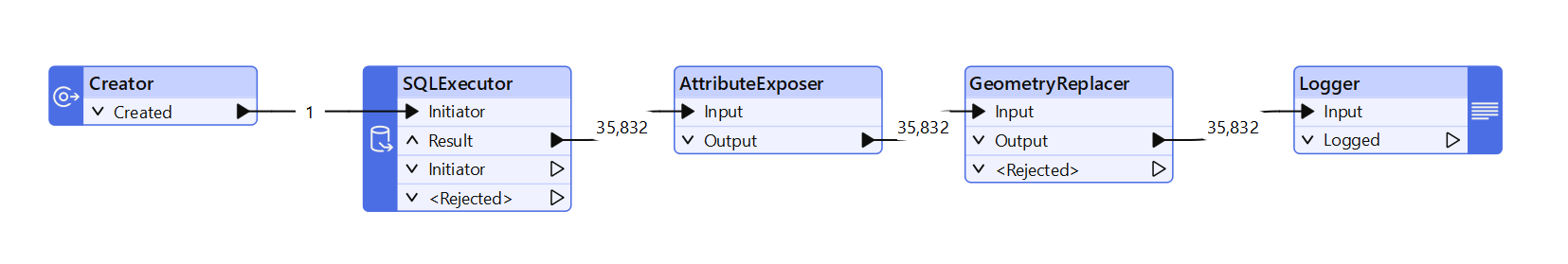 The Geocoder transformer, which allows the conversion of addresses to latitude/longitude coordinates, now offers a Forward (Batch) geocoding method when using ArcGIS Online or ArcGIS Server geocoding services. This feature is scalable, allowing the user to improve throughput compared to processing single addresses per call. This ability to customize the batch size helps improve efficiency and eliminates time-consuming processes. Moreover, when used in combination with a custom locator view service URL you can reliably and efficiently create geometry from location information, like place names or addresses.