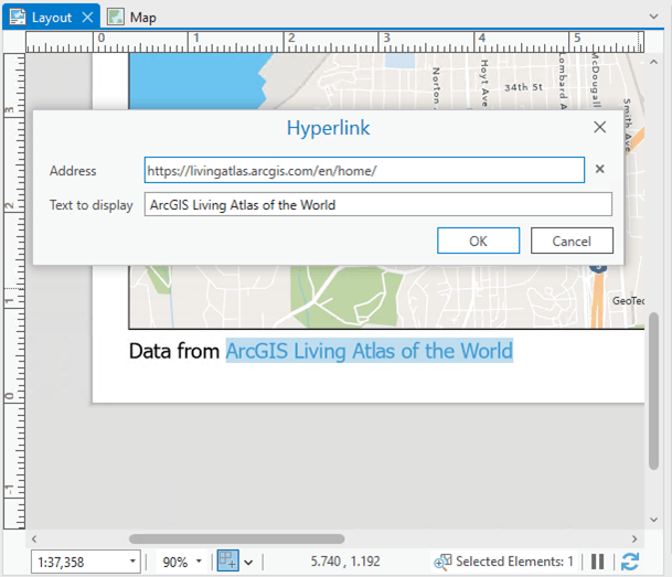 Hyperlinks are now supported in text elements for Layouts and Reports, adding a new level of interactivity to your projects. When a URL or full file path is added to a Layout text element, Layout table frame, or Report text, it is automatically recognized and linked. Furthermore, to complement this functionality, the new Hyperlink window enables you to easily create new and update existing hyperlinks. You can open the Hyperlink window with the classic Ctrl + K keyboard shortcut or the Text tab on the main ribbon. Support for hyperlinks is also honored when exporting layouts as PDFs.