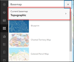 - Open Map Viewer and click Basemap on the Contents (dark) toolbar.