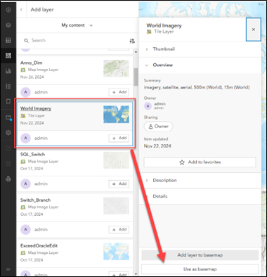 We will be using Esri’s World Imagery basemap which has been added to the basemap gallery in ArcGIS Enterprise: https://tiledbasemaps.arcgis.com/arcgis/rest/services/World_Imagery/MapServer