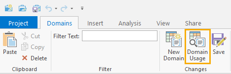 Domain: This is a drop-down that is populated based on the Workspace provided in the pane. Use this to select a specific domain that you want to explore for usage in the geodatabase.