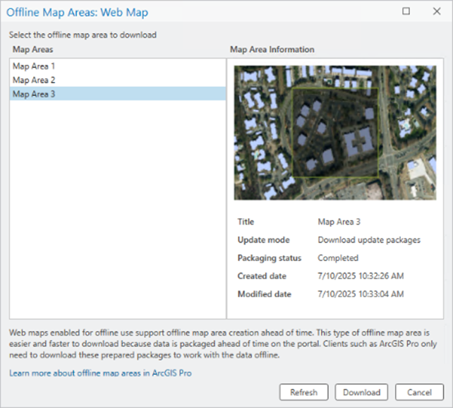 In the earlier installments of this blog series, you learned how to create a web map and the offline map areas prepared ahead of time before they can be downloaded in ArcGIS Pro. In this final blog article of the series, you will use these items and finish the download and synchronization workflow.