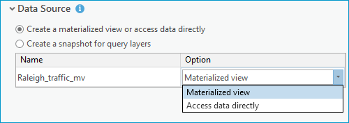 The first radio option allows you to pick whether the data will be accessed directly or by using a materialized view.