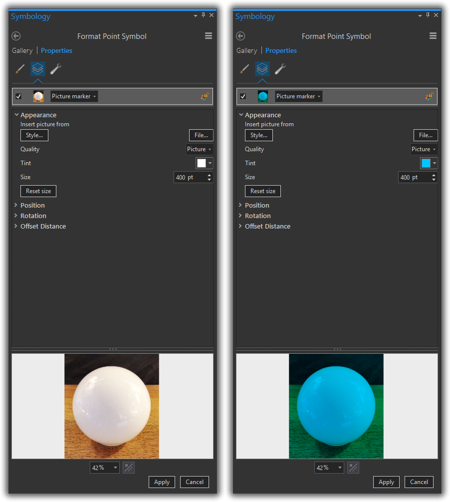 If you’ve never used the “tint” property on a picture marker, it hijacks the relative whiteness of pixels (this took me a bit to wrap my head around) and paints it the color of your choice.