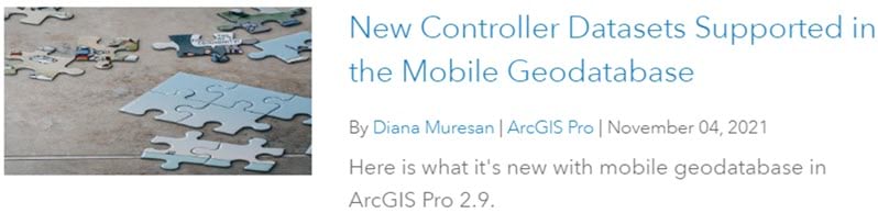 New Controller Datasets Supported in the Mobile Geodatabase