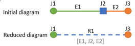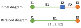 2. There are topological differences when reducing schematic nodes with two adjacent links vs reducing diagram junctions with two adjacent junctions