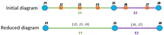 | Any schematic node reduction depends on the number of its adjacent links, that is, the number of links connected to the schematic node to reduce.