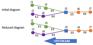 4. The schematic node reduction process can be set up according to the geometry of its incident links while the diagram junction reduction process cannot
