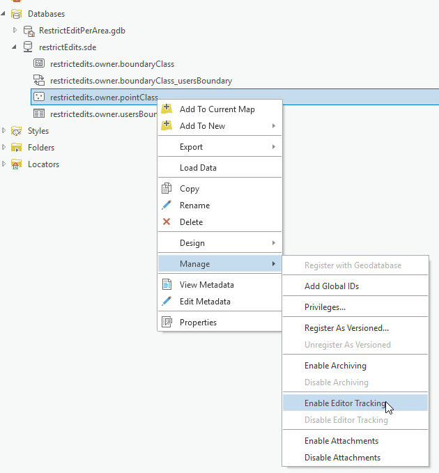 Note: This example can be done in a File geodatabase with ArcGIS Pro 2.4 or later. However I’m using an enterprise geodatabase.