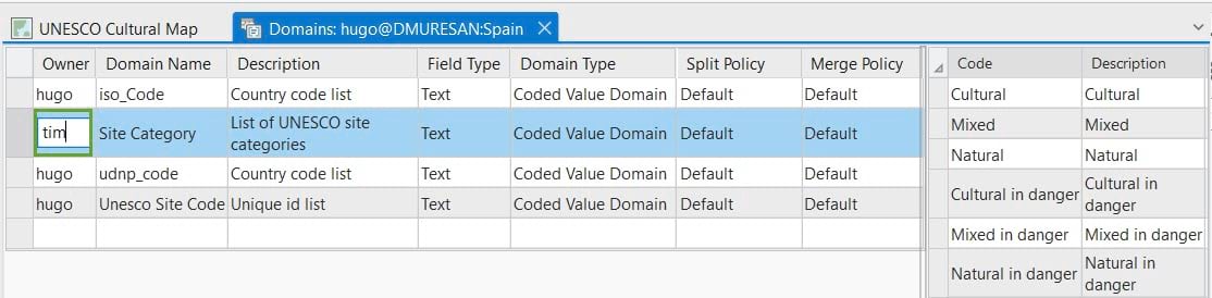 When changes in the organization occur, it is better to plan and address them ahead of time. In this case, Hugo was preparing to depart his role and wanted to transfer ownership of his domain. Although GIS users would still be able to continue assigning these domains to their datasets, there will not be a dedicated user to manage the domains. To avoid having the geodatabase administrator manage the attribute domains (tasks outside of his area) and maintain a clear role structure within the organization, Tim was selected as the new domain owner.