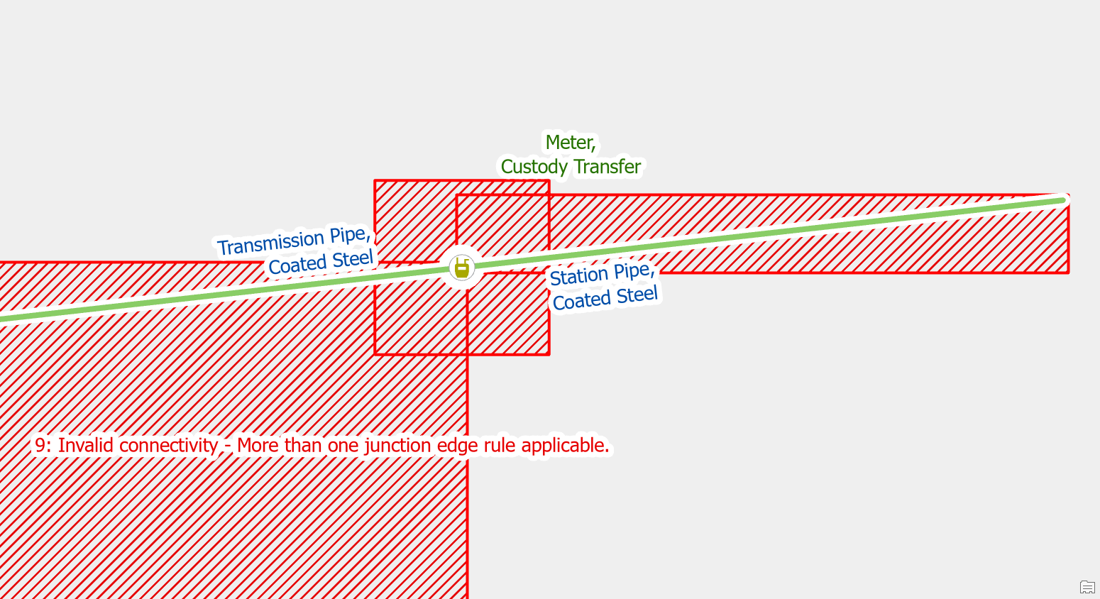 - Ambiguous connectivity error because the junctions and lines each have multiple rules