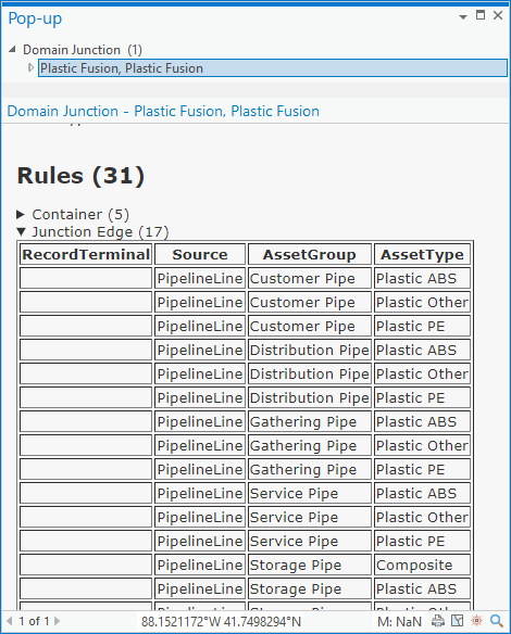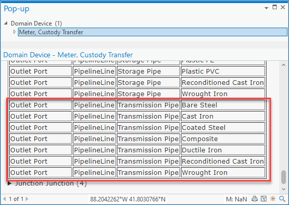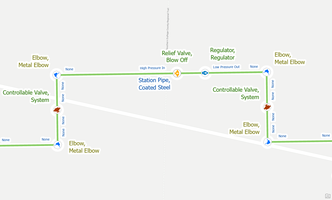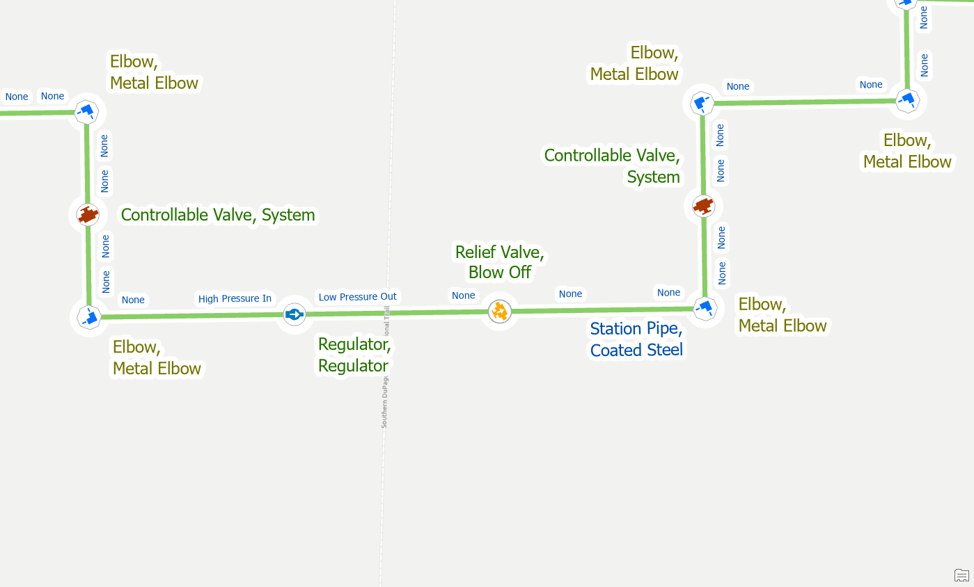 The Utility and Pipeline Data Model (UPDM) is the industry data model for the natural gas and pipeline industries. One of the quality control configurations of the utility network rulebase included in this data model is to prevent editors from incorrectly connecting plastic assets to metallic assets. Not defining the material type for a fitting, device, or pipe segment will prevent it from being able to successfully connect to another fitting, device, or pipe segment because features without materials don’t have any connectivity rules.