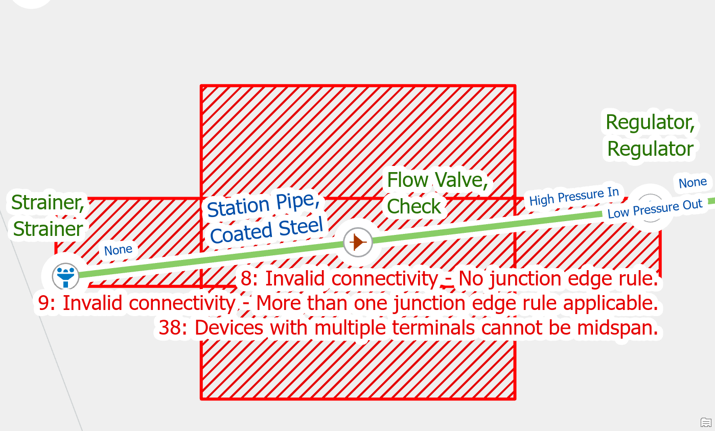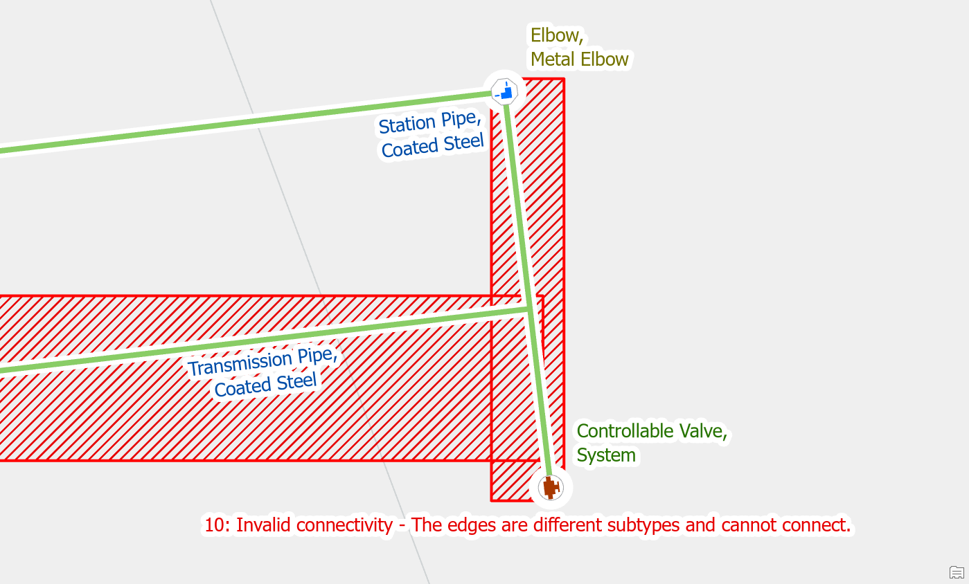 | Edge-Edge Errors | 10: Invalid connectivity – The edges are different subtypes and cannot connect |