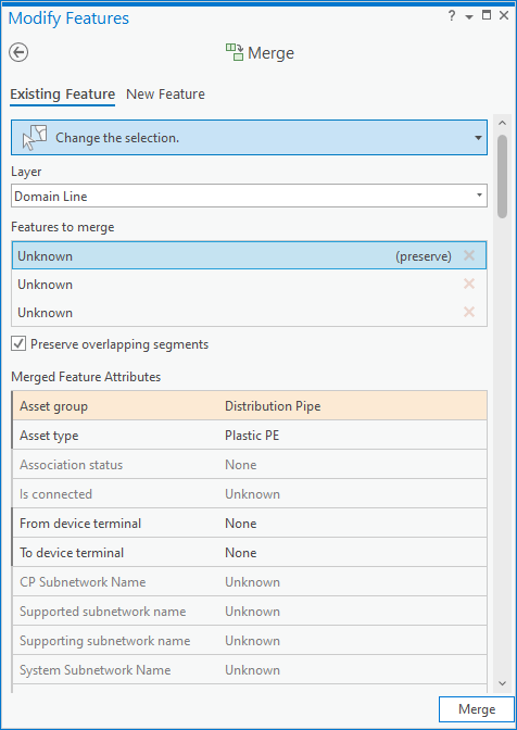 If the situation appears to be caused by a pipe that was incorrectly split and or classified, you can edit the line feature to correct the error. If you think the problem is how the line is classified, you should just update the material of the line. If you think the error is caused by a line that was inadvertently split, you can use the merge tool to combine the two (or more) lines into a single line segment.