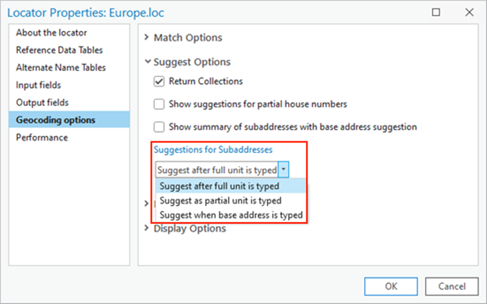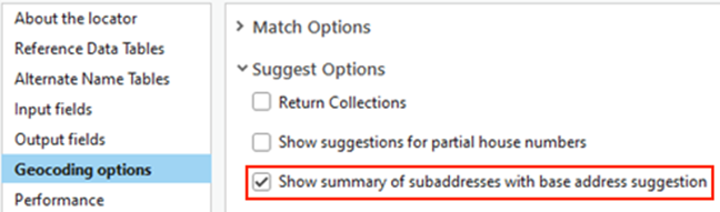Enable summaries: Activating the Show summary of subaddresses with base address suggestion setting provides an indication of the subaddresses at an address.