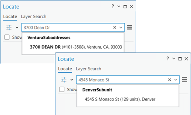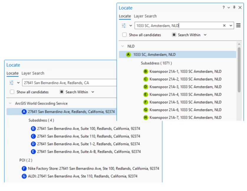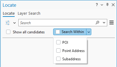 Activate SearchWithin: If you are a GIS analyst building your own Locator, the Return associated features setting enables the SearchWithin button on the Locate Pane. This setting gives you control into what a dispatcher will see in their match results.