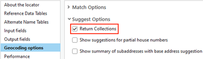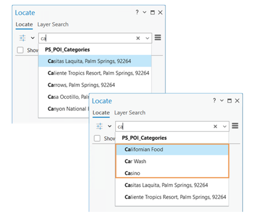 Search for POI features: Enabling the Return Collections setting allows user to search for features by category.