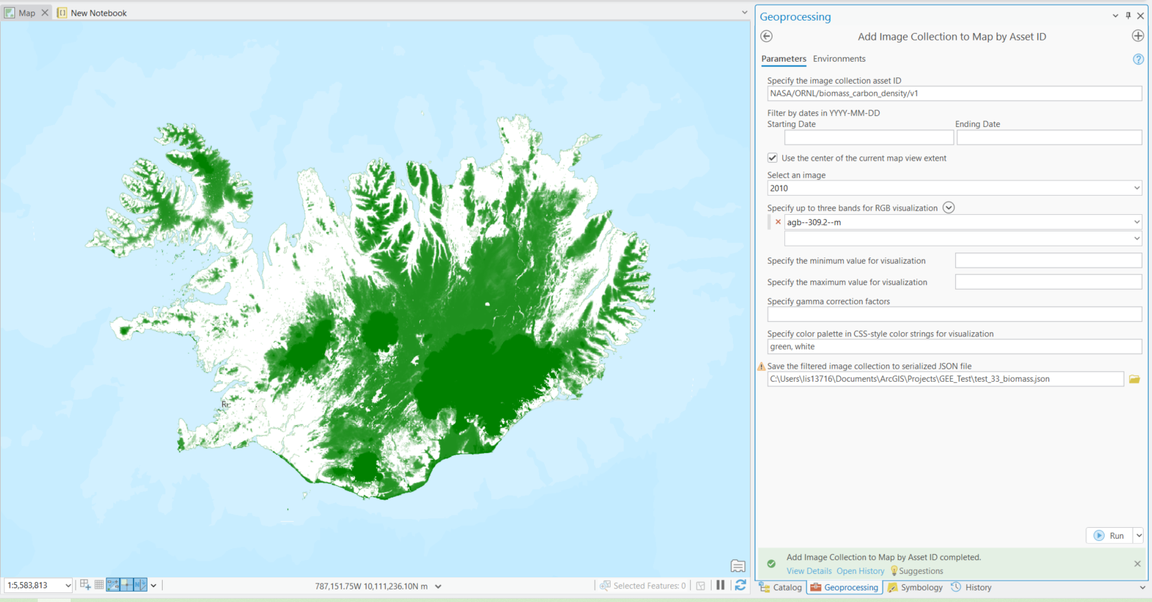 - Add image or feature collections into your ArcGIS Pro map using a simple GEE Asset ID from the GEE Catalog or your Google Cloud project.