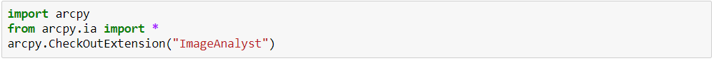 Now I’ll start the process. I import ArcPy and the image analysis module (arcpy.ia), which includes the APIs that I will be using, and also check out the Image Analyst license, which is required by some functions.