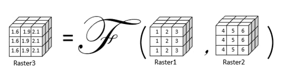 Map algebra is used as a general language in ArcGIS for processing and analyzing 2D rasters. Climate data has a third dimension (time), and some has an additional fourth dimension such as depth or height. The multidimensional Map Algebra capability makes analyzing climate data, or any scientific data, easier. The operators that you normally use for math, such as 3 = 1 + 2, can be used with 2D rasters, and these operators have also been enhanced to support multidimensional rasters.
