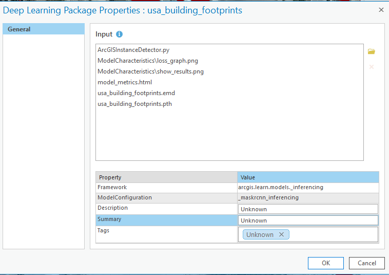 The Building Footprint Extraction – USA deep learning package is designed to work with high-resolution images (10–40 cm). Other dlpks have different recommended resolutions – check the dlpk’s item details page for more information. To determine your imagery’s resolution: