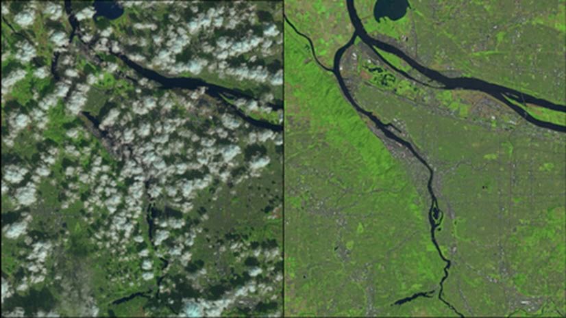 - Replace a cloudy region with another region of pixels.