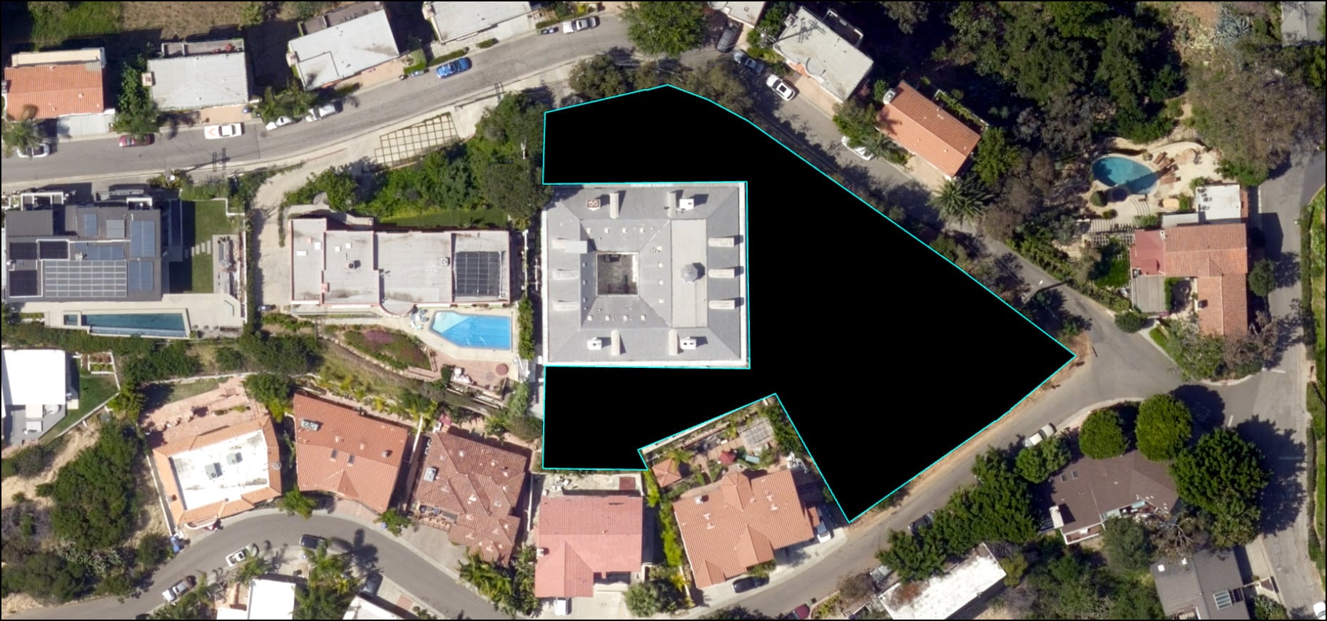 In the image below, we’re looking at a neighborhood north of Hollywood in the foothills. This area is east of the recent Getty Fire. To demonstrate the Pixel Editor’s redaction capabilities for multispectral or panchromatic imagery, let’s focus our attention on the large square house in the middle of the image.