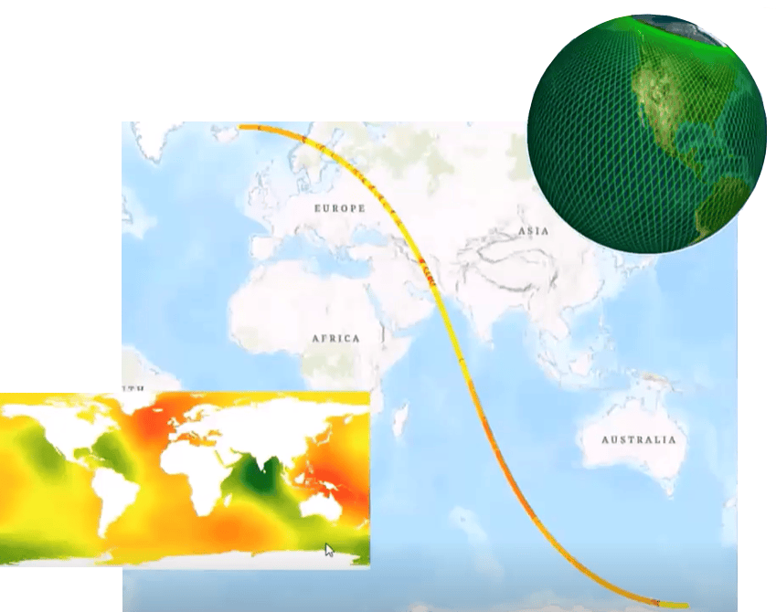 One of the newer updates is the introduction of trajectory dataset, which is a new optimized model to work with trajectory data from sensors such as Sentinel-3, CrySat and ICESat. This is used to measure surface elevation points along the sensors’ track and supports expansion of user’s abilities to perform earth modeling and climate study within ArcGIS. Typical use cases include understanding ocean and ice sheet change. Analysis of these datasets can be performed with the ArcGIS Image Analyst extension.