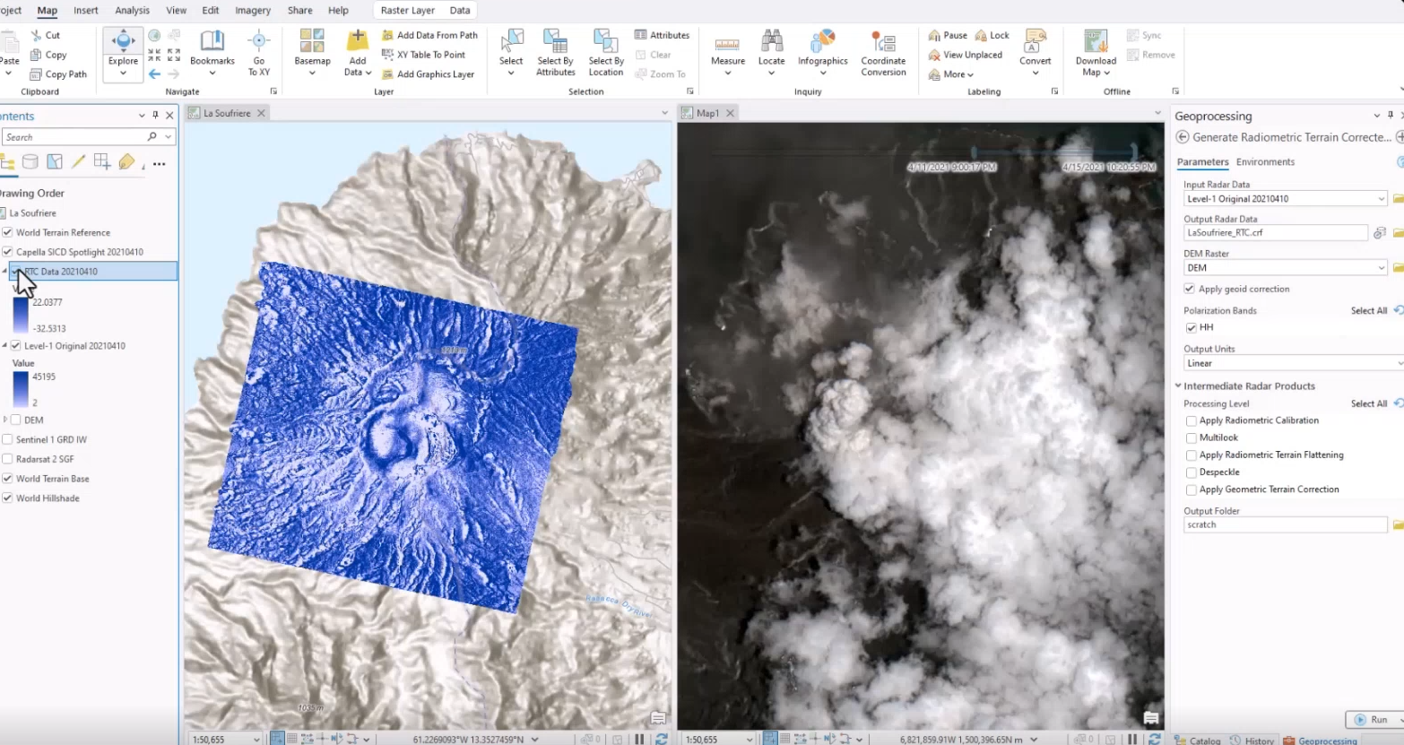 For Synthetic Aperture Radar (SAR) data, the Generate Radiometric Terrain Corrected (RTC) Data script tool is a significant enhancement. This tool transforms Level 1 SAR data into calibrated, terrain-corrected, and analysis-ready imagery. By abstracting away the complexity of SAR processing, the Generate RTC Data script tool makes these high-precision products more accessible to you.