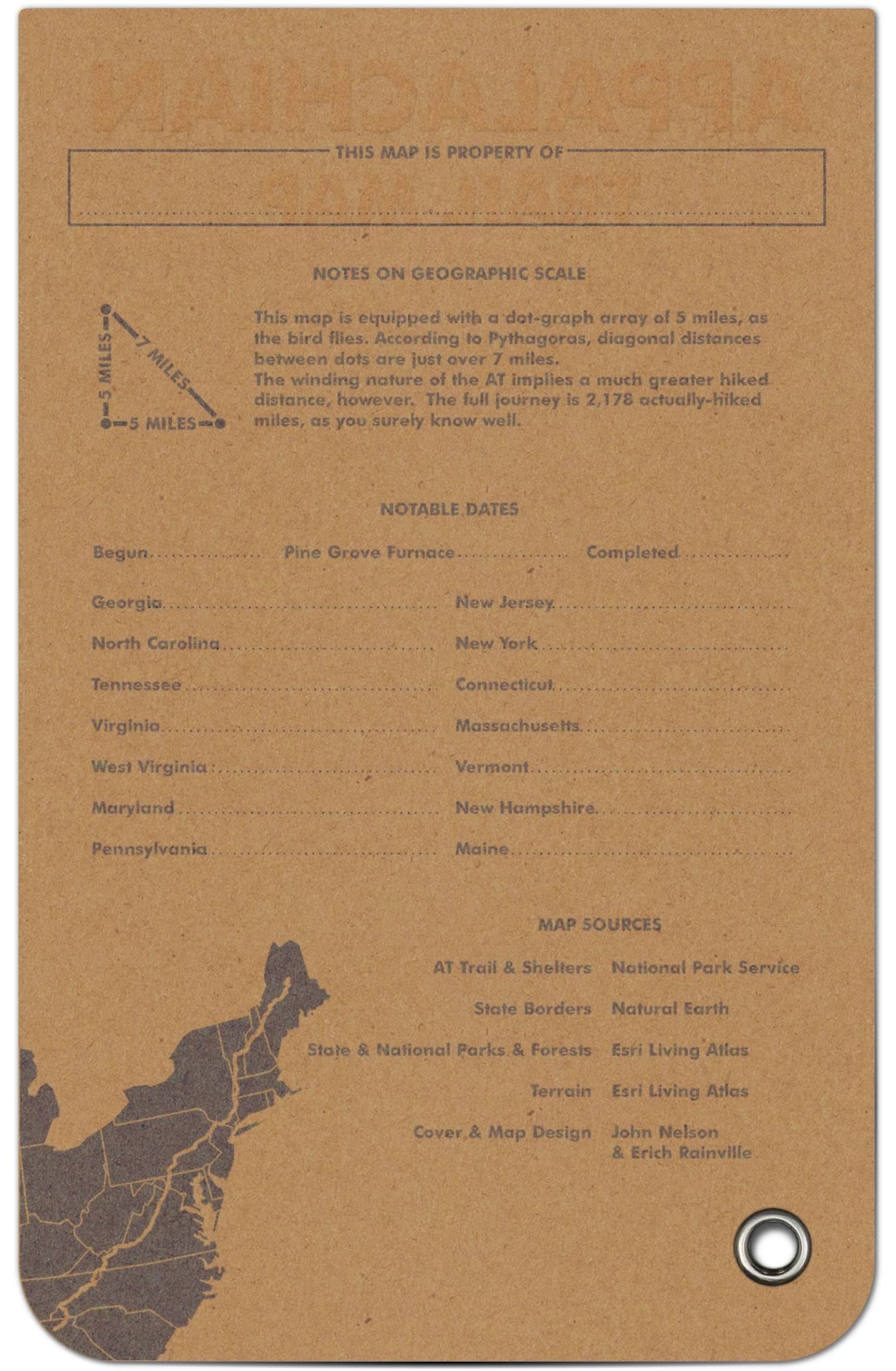 When I was making the absurdly long Appalachian Trail journal map, I soon found that a conventional scalebar just wasn’t going to do the trick. Do I put one at the top, and it’s almost immediately hidden when the map reader unfurls the map a bit? At the bottom where you can’t even see it until it’s all the way unfurled? Or should I repeat a scalebar every so often so it’s never totally out of sight? Meh!