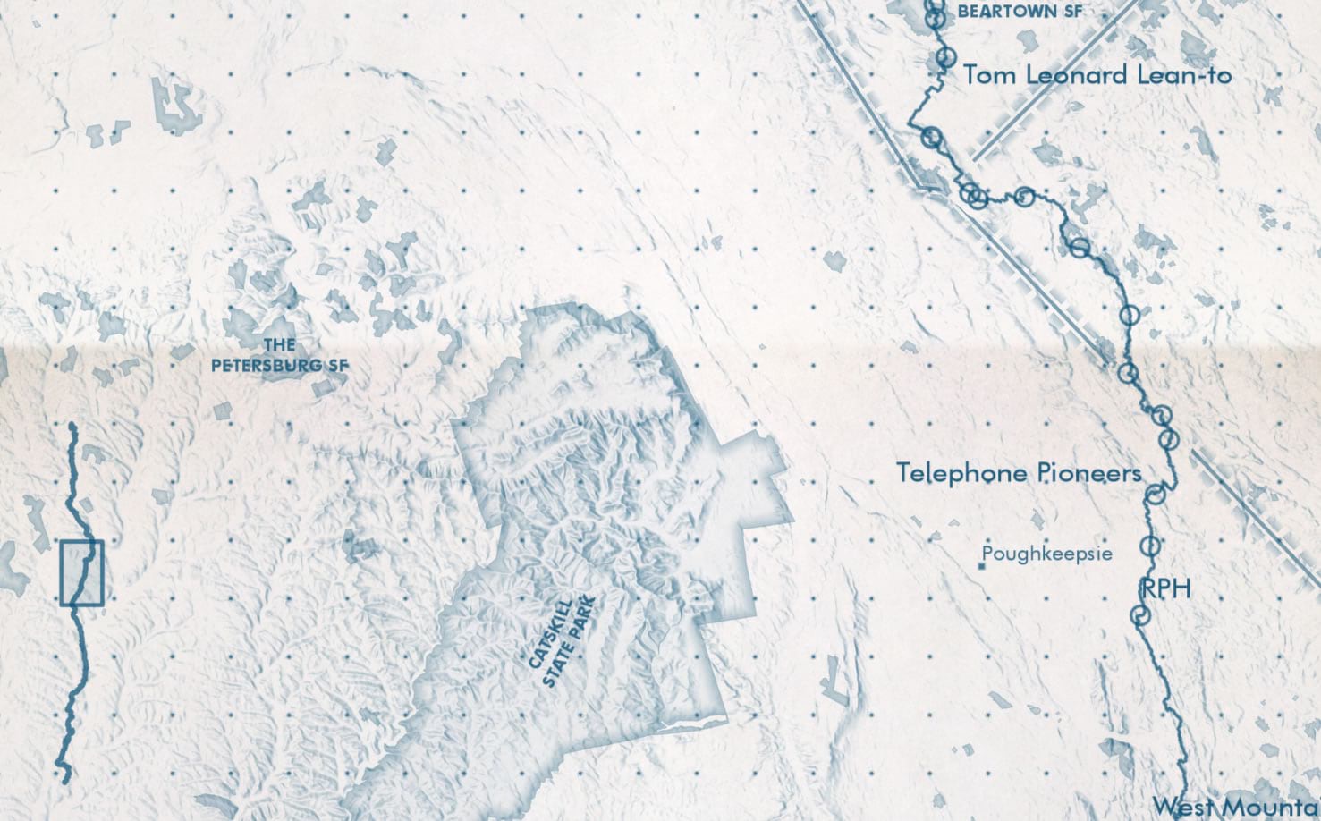 For this map I am using Appalachian Trail detailed center-line and shelter locations, both provided by the National Park Service via ArcGIS Online.