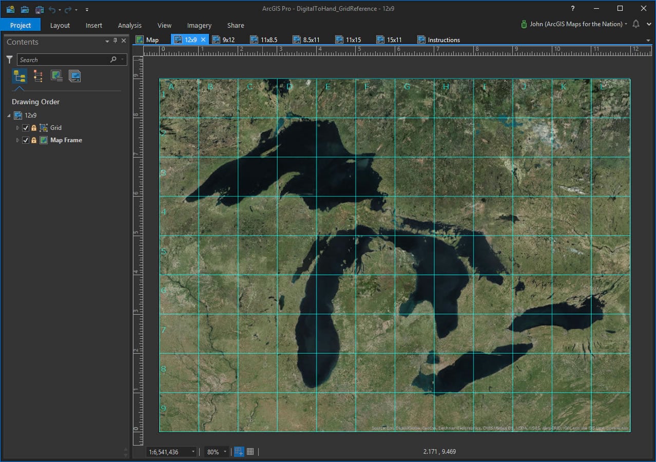 This ArcGIS Pro project is a simple set of layouts with 1×1 reference grids overlain atop a map. This little trick my Mom taught me makes transcribing geographic data to paper so much easier, and more accurate.