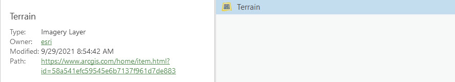 Go to the Living Atlas and select the Terrain Imagery Layer.